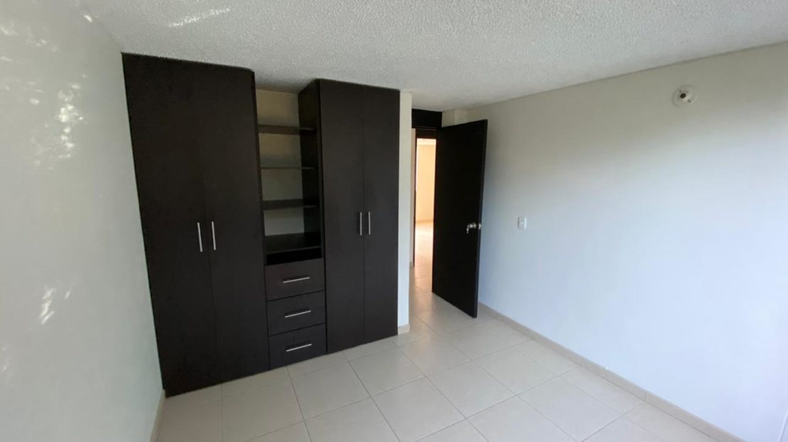 Apartamento con tres (3) habitaciones, habitación principal con baño, baño auxiliar, sala comedor, cocina integral y zona de ropas. Conjunto cerrado con parqueadero comunal y vigilancia 24 horas.